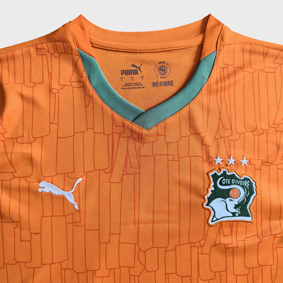 Folklore and football are one in the Côte d’Ivoire Home Kit. With a design drawn from the intricate beauty of Ivorian traditional costumes, it’s a celebration of artistry, culture, and the unstoppable spirit of Côte d’Ivoire.
